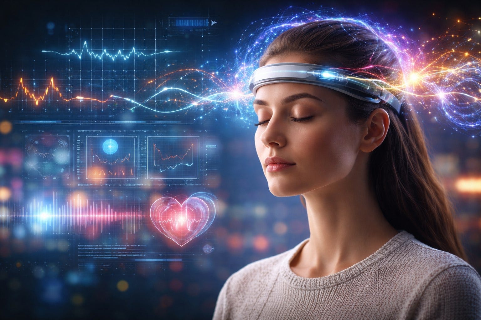 AI algorithms analyze your unique neural and physiological data over time and tailor their interpretations based on your individual patterns. Maybe your HRV drops sharply when you’re anxious. Maybe your brain waves shift during creative flow rather than focus. Smart neurotech adapts to your signatures, not generalized norms.
